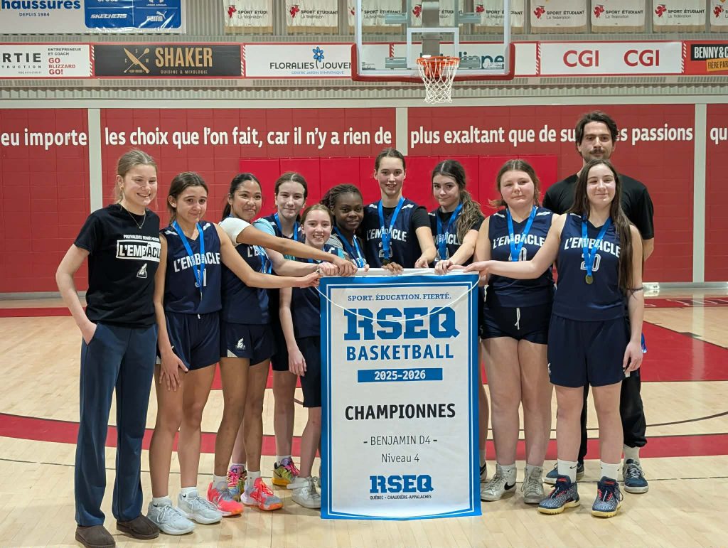 L’équipe benjamin féminin, entrainée par Jeffrey Banville et Marie-Philip Poulin ont remporté le championnat régional division 4 niveau 4. L’Embâcle a vaincu en finale le Séminaire St-François par la marque de 37 à 35.