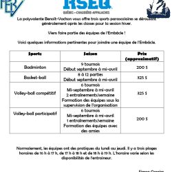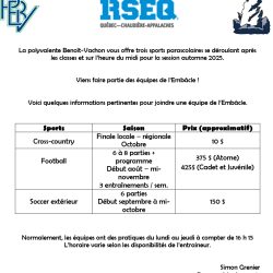 Voici le document d'informations pour les sports parascolaires. Pour les sports d'automne (cross-country/football/soccer), ...